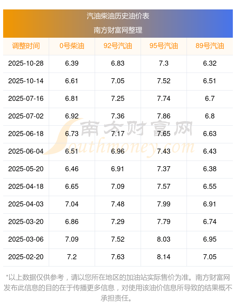 2025年汽油柴油油價(jià)調(diào)整一覽表