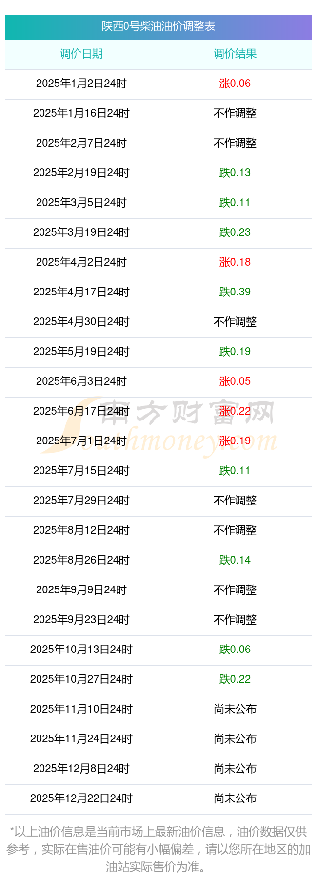 陜西西安2025年油價(jià)調(diào)整時(shí)間及價(jià)格表