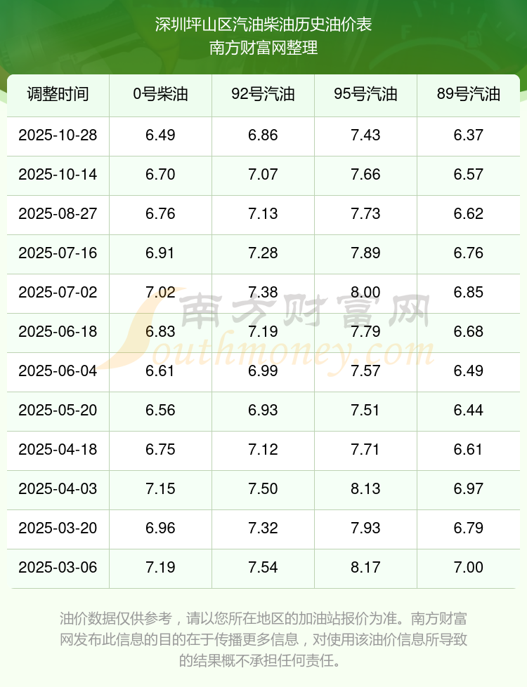2025年深圳坪山區(qū)油價(jià)調(diào)整時(shí)間表