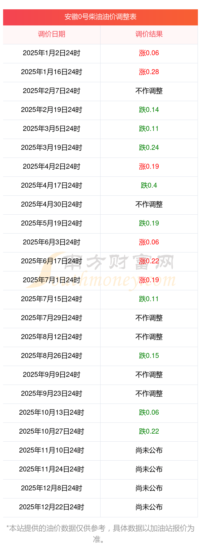 以上數(shù)據(jù)僅供參考,請(qǐng)以您所在地區(qū)的加油站實(shí)際售價(jià)為準(zhǔn)。南方財(cái)富網(wǎng)發(fā)布此信息的目的在于傳播更多信息,對(duì)使用該油價(jià)信息所導(dǎo)致的結(jié)果概不承擔(dān)責(zé)任。