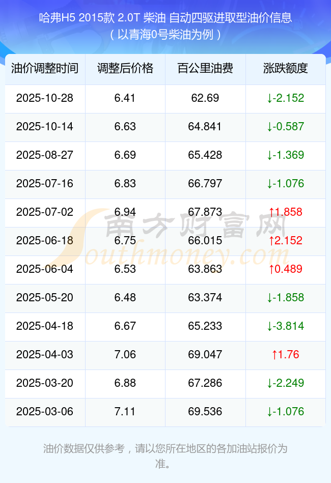 根據(jù)10月28日0號(hào)柴油最新調(diào)整價(jià)格6.41元/升來(lái)計(jì)算(以青海為例),該車(chē)型每百公里的平均油費(fèi)是62.69元,上一輪10月14日調(diào)整價(jià)格6.63元每升來(lái)計(jì)算,每百公里的平均油費(fèi)是64.841元,對(duì)比上一輪少花2.152元,下一輪的油價(jià)調(diào)整時(shí)間是11月10日24時(shí)。