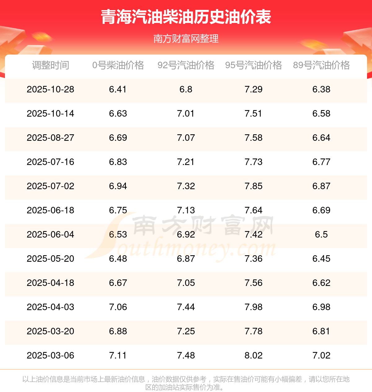 (11月7日)92、95號(hào)汽油價(jià)格一覽表