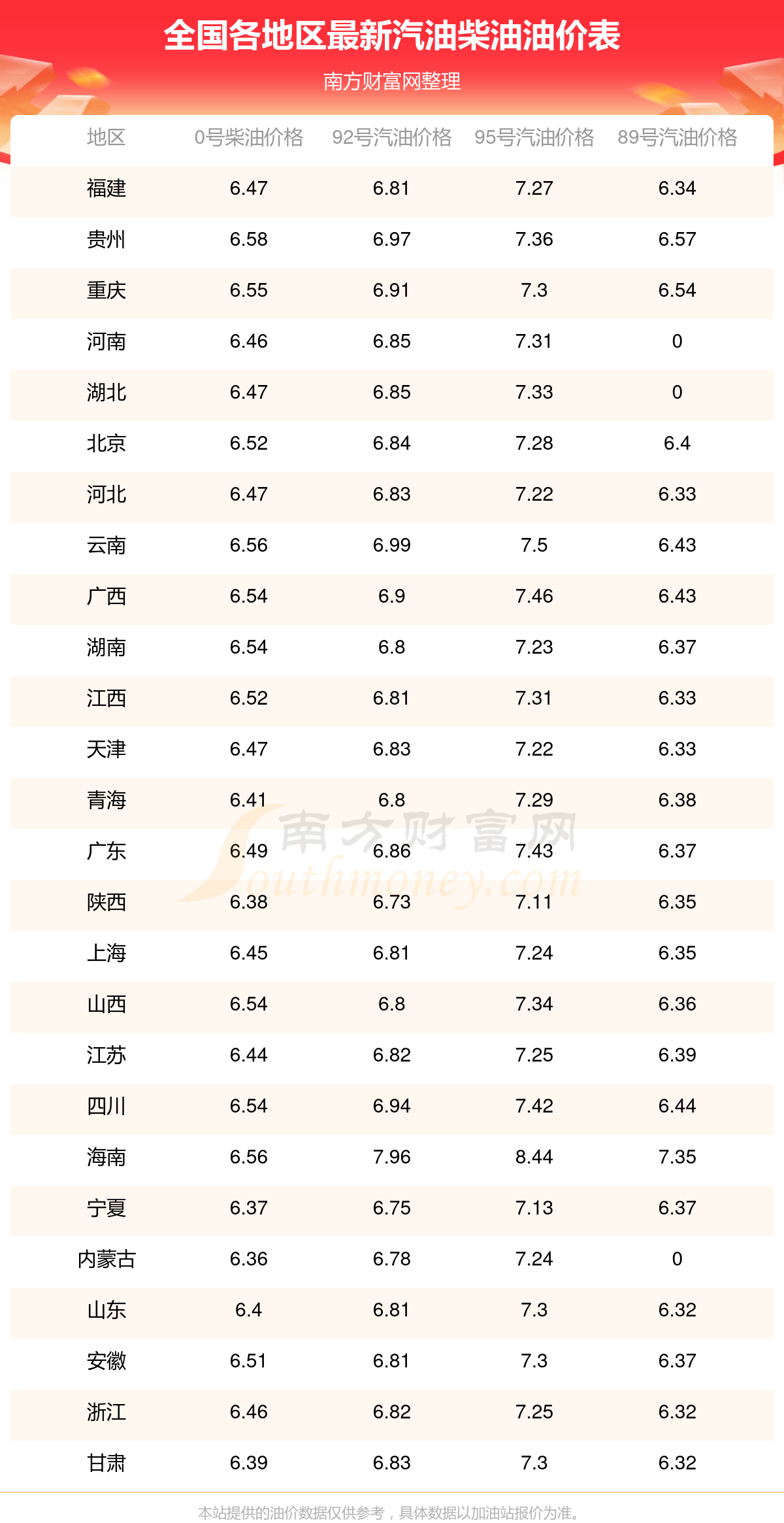 以上油價信息是當前市場上最新油價信息,油價數(shù)據(jù)僅供參考,實際在售油價可能有小幅偏差,請以您所在地區(qū)的加油站實際售價為準。