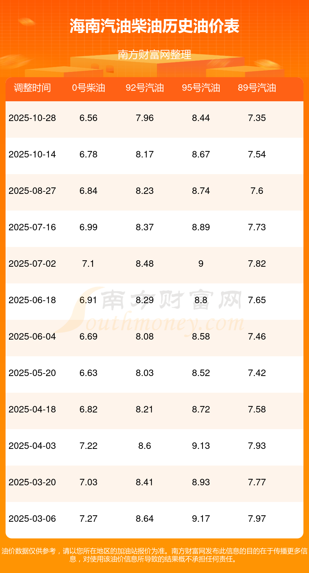 11月7日,海南89號(hào)汽油的價(jià)格是7.35元每升,本次的調(diào)整時(shí)間為10月28日,對(duì)比上次的調(diào)整跌了0.19元,跌2.52%,11月10日24時(shí)為下一輪油價(jià)調(diào)整時(shí)間,還有3.51天。
