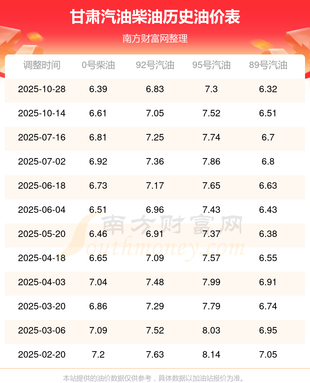 (11月7日)全國(guó)油價(jià)一覽表