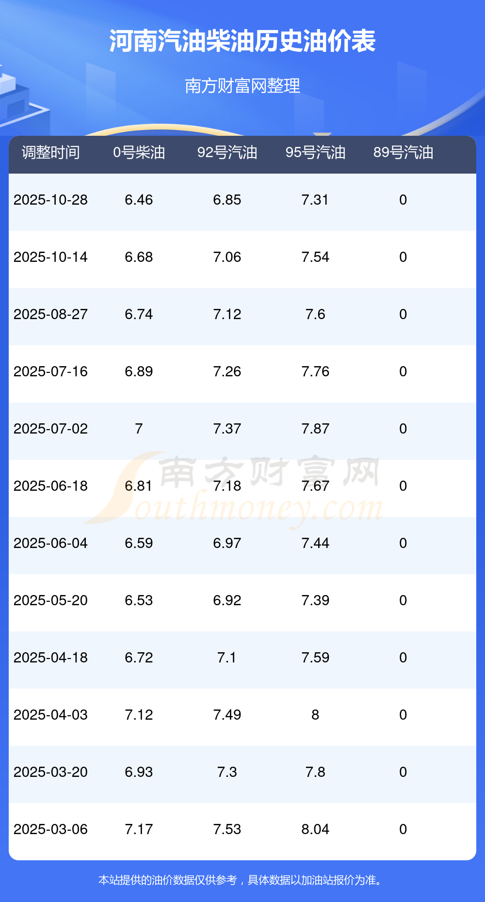 11月7日,河南95號汽油的價(jià)格是7.31元每升,本次的調(diào)整時間為10月28日,對比上次的調(diào)整下跌了0.23元,下跌3.05%,11月10日24時為下一輪油價(jià)調(diào)整時間,還有3.51天。