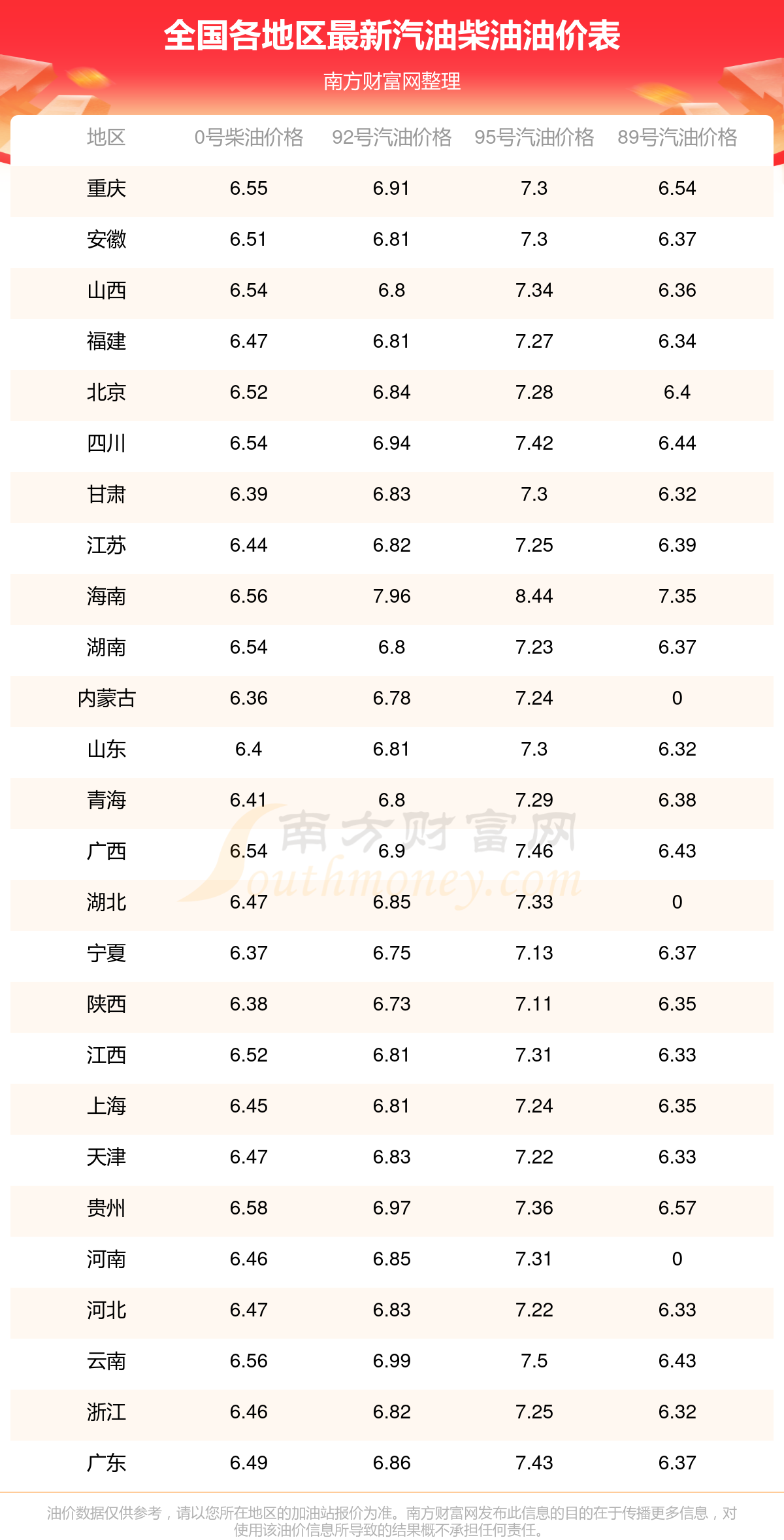 油價數(shù)據(jù)僅供參考,請以您所在地區(qū)的各加油站報價為準。