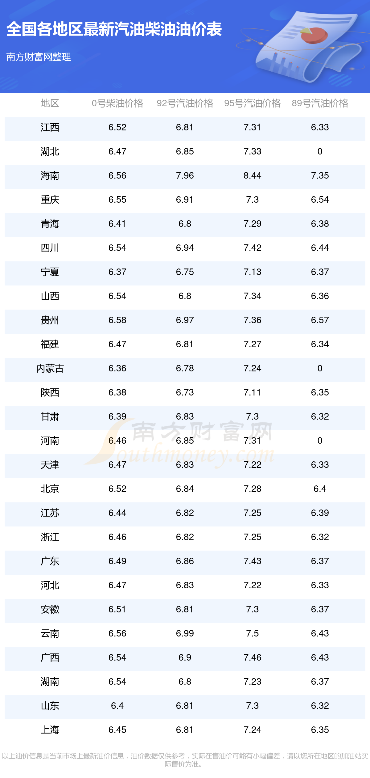 2025年11月7日全國油價(jià)調(diào)整及最新汽油價(jià)格表
