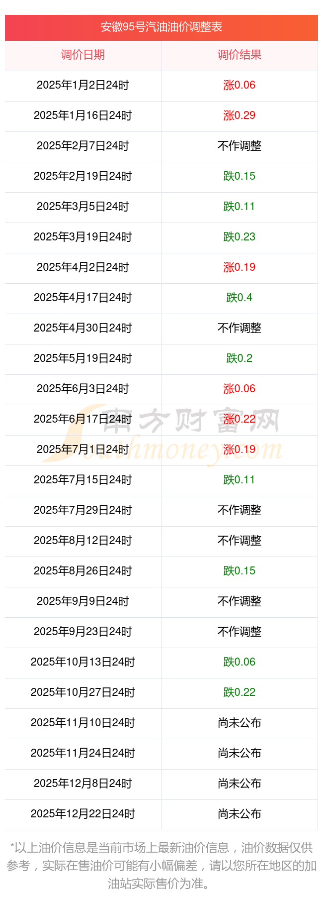 2025年油價(jià)調(diào)價(jià)窗口日期表:
