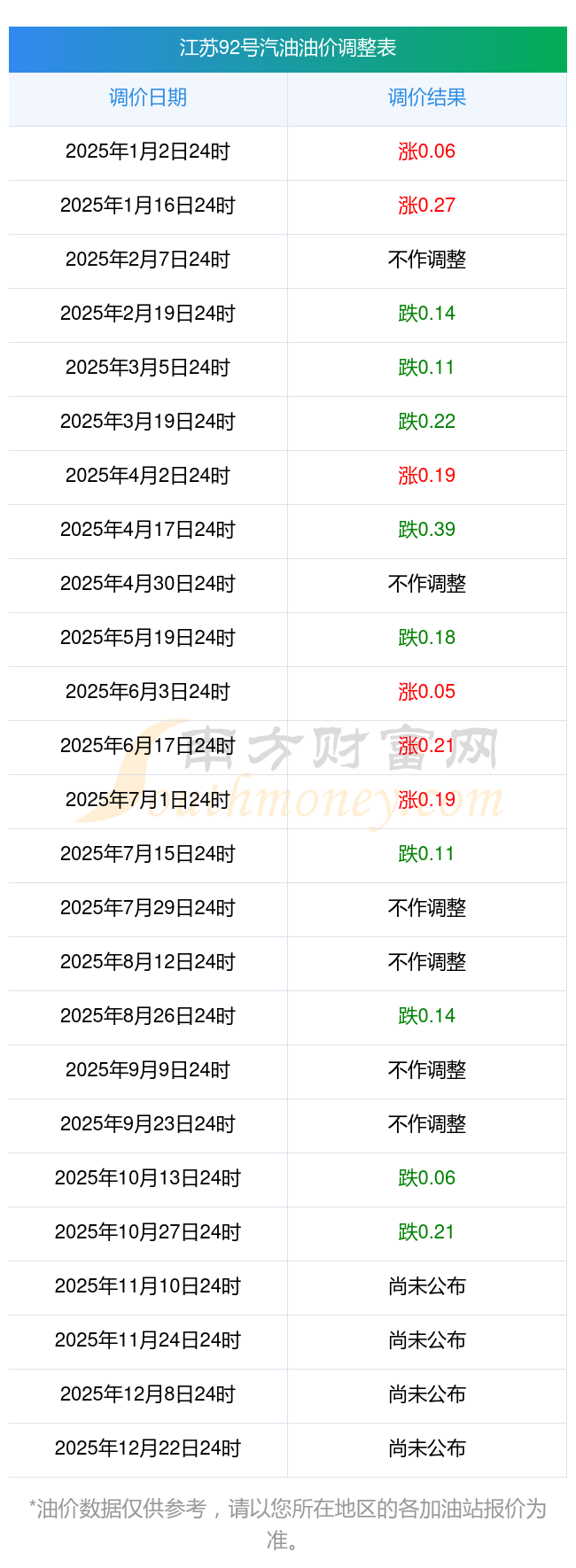 2025年油價(jià)調(diào)整時(shí)間一覽表及價(jià)格