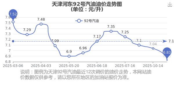 天津河?xùn)|最近調(diào)價(jià)的油價(jià)走勢圖