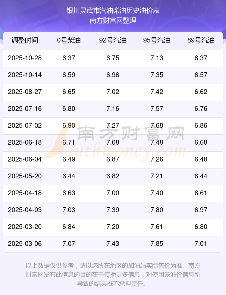 2025年銀川靈武市汽油價(jià)格一覽表