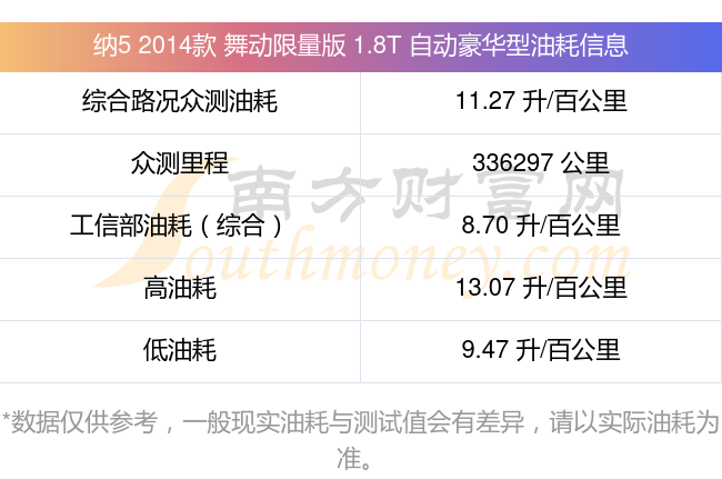 數(shù)據(jù)僅供參考,一般現(xiàn)實(shí)油耗與測(cè)試值會(huì)有差異,請(qǐng)以實(shí)際油耗為準(zhǔn)。