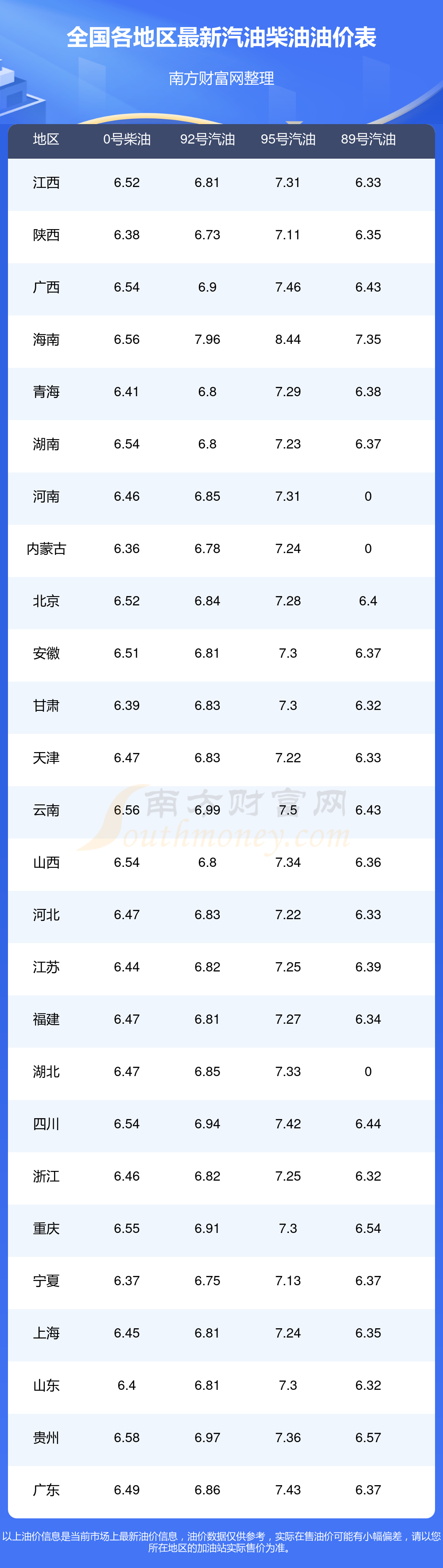 油價數(shù)據(jù)僅供參考,請以您所在地區(qū)的加油站報價為準(zhǔn)。南方財富網(wǎng)發(fā)布此信息的目的在于傳播更多信息,對使用該油價信息所導(dǎo)致的結(jié)果概不承擔(dān)任何責(zé)任。