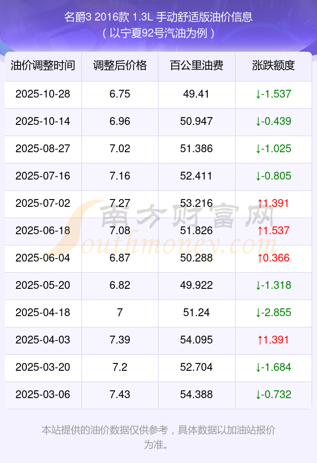 以上油耗數(shù)據(jù)由南方財(cái)富網(wǎng)整理提供,僅供參考。