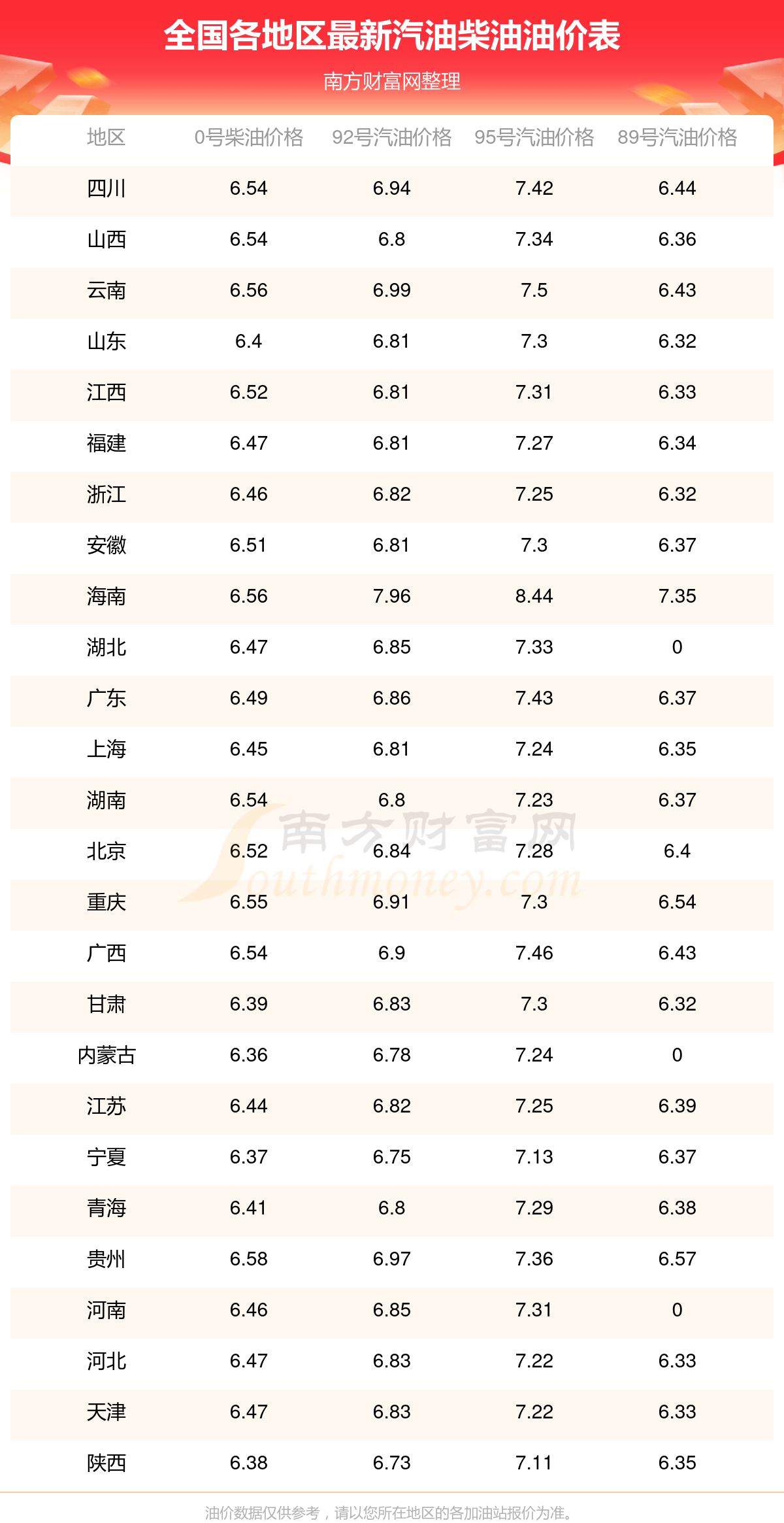 本輪油價調(diào)整時間為10月28日 ,調(diào)整后全國的油價具體為: