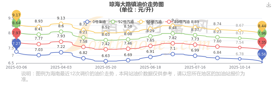 瓊海大路鎮(zhèn)11月7日92號(hào)汽油歷史油價(jià)調(diào)整走勢(shì)圖
