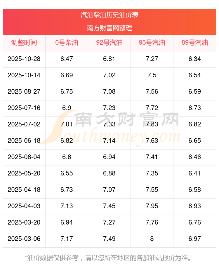 福建莆田95號(hào)汽油11月7日的最新價(jià)格(10月28日油價(jià)調(diào)整后的價(jià)格):福建莆田95號(hào)汽油7.27元/升,相對上次調(diào)整時(shí)間10月14日的油價(jià)7.5元每升,下跌了0.23元,下跌3.067%。下一輪油價(jià)調(diào)整時(shí)間11月10日24時(shí),距離現(xiàn)在還有3.44天。
