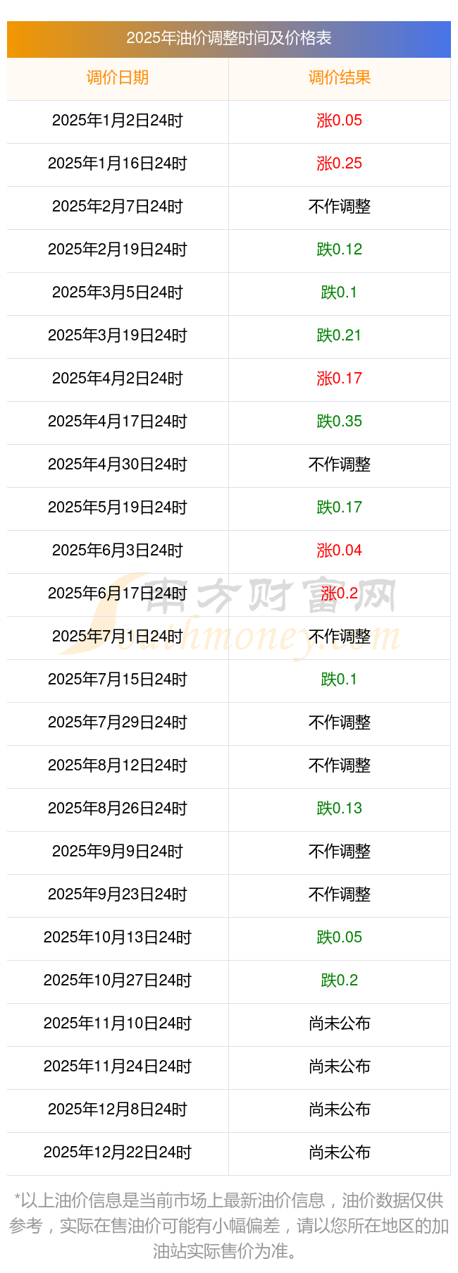 2025年11月7日油價調(diào)整時間及價格一覽表