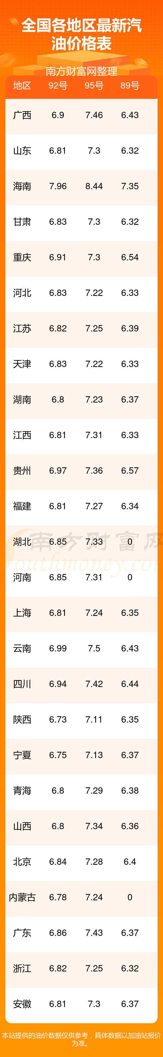 油價數(shù)據(jù)僅供參考,請以您所在地區(qū)的各加油站報(bào)價為準(zhǔn)。