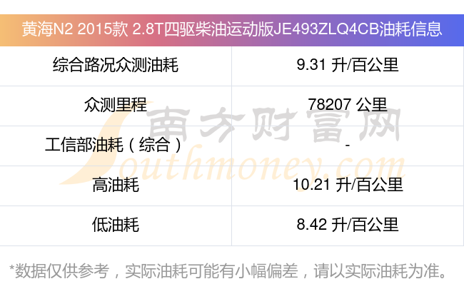 根據(jù)車主實測數(shù)據(jù),該車型低油耗為8.42升每百公里,高油耗為10.21升每百公里,綜合路況眾測油耗為9.31升每百公里。