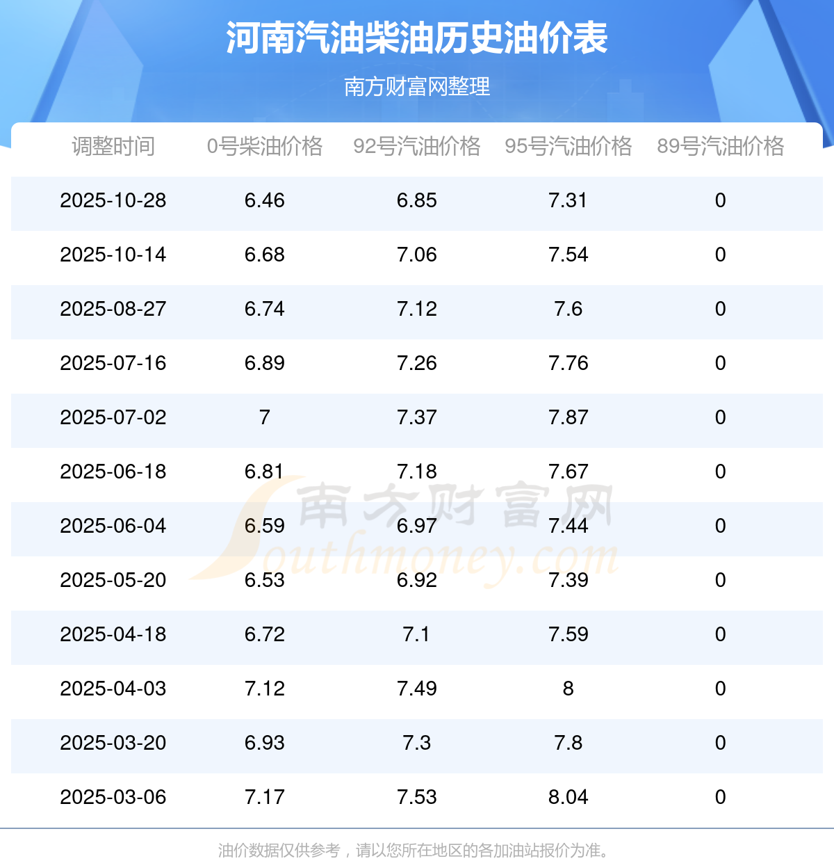 (11月7日)全國(guó)油價(jià)一覽表
