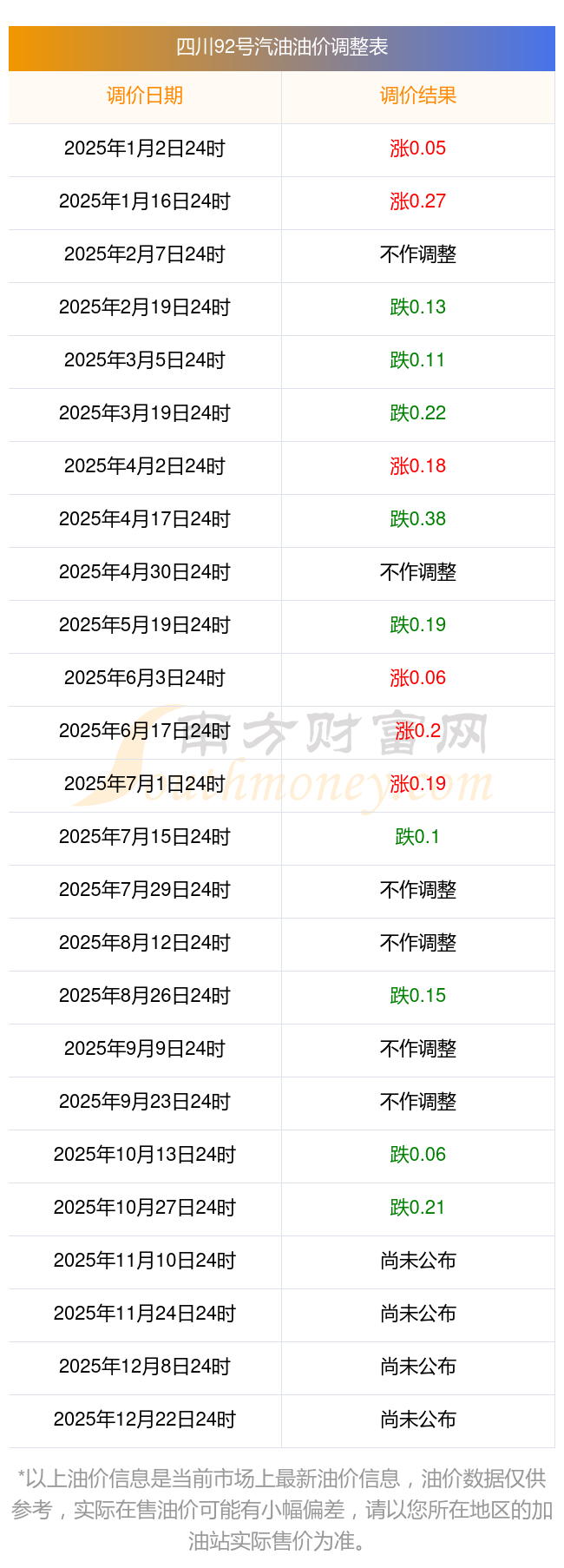 2025年成都油價(jià)調(diào)整日歷時(shí)間表