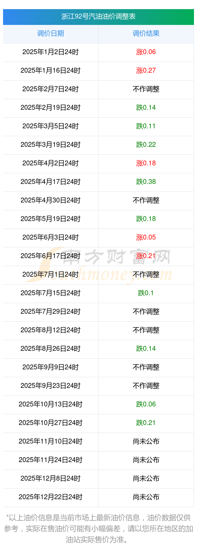 2025年浙江龍泉油價(jià)調(diào)整日歷時(shí)間表