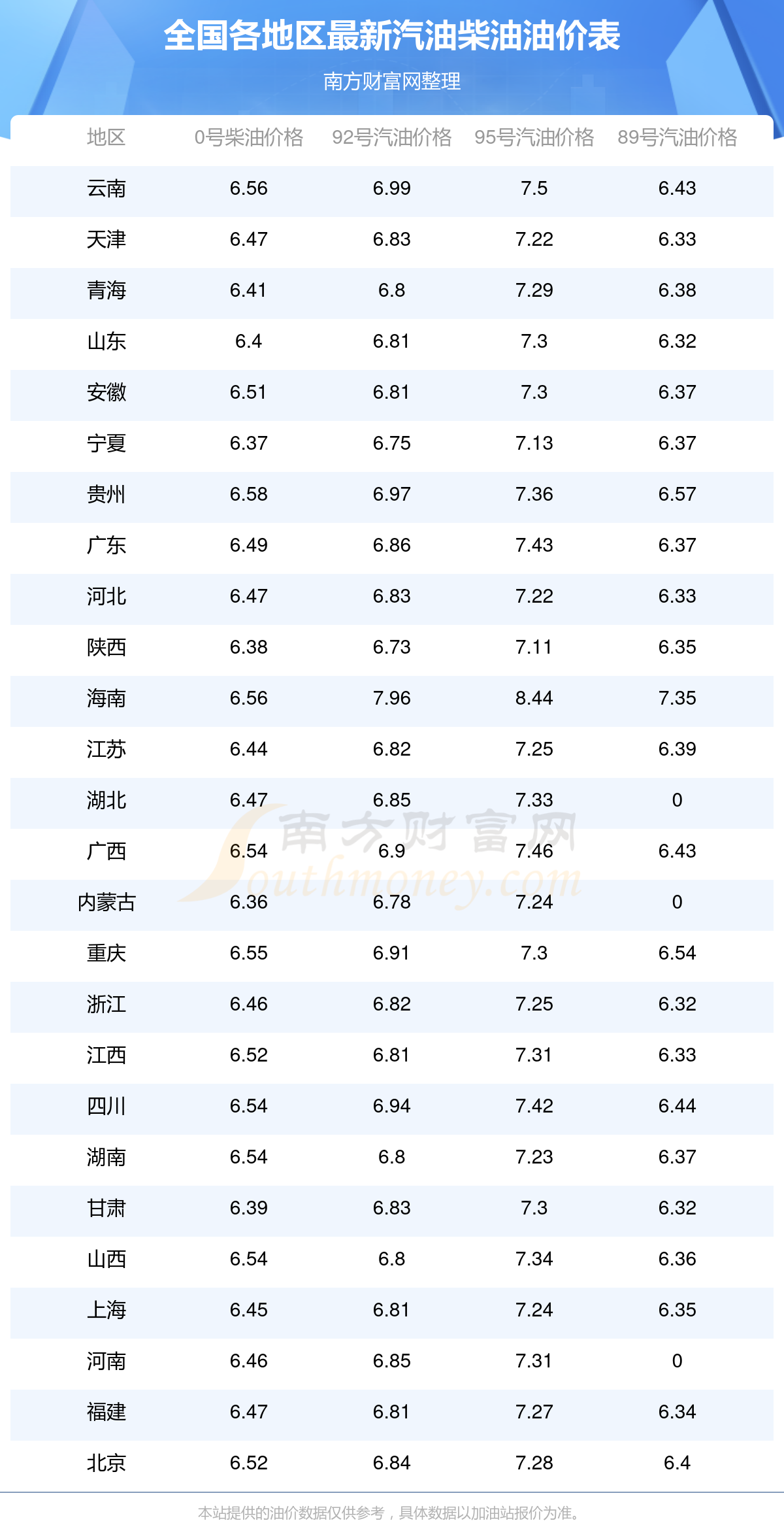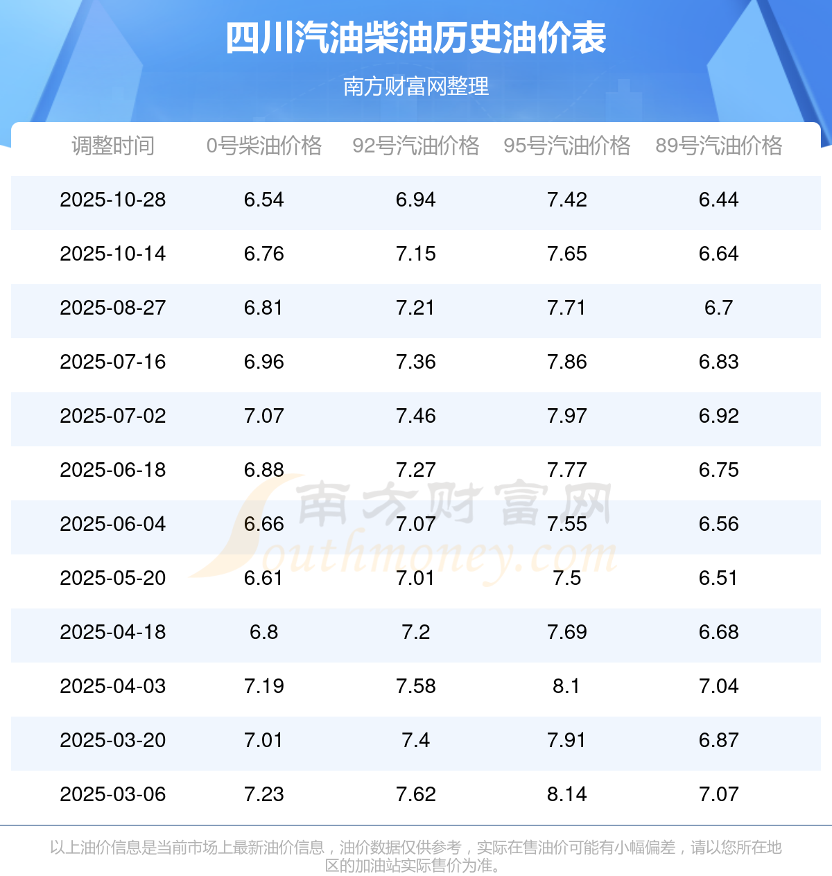 按10月28日0號柴油最新調(diào)整價格6.54元每升來計算(以四川為例),該車型百公里平均油費為55.067元,按上一輪10月14日調(diào)整價格6.76元每升來計算,百公里平均油費為56.919元,對比上一輪少花1.852元,下一輪油價調(diào)整時間為11月10日24時。