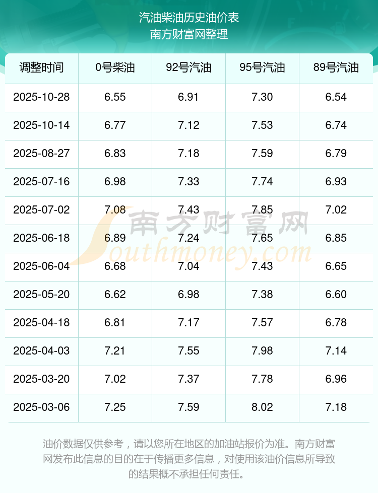 2025年油價(jià)調(diào)價(jià)窗口日期表: