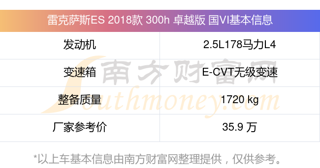 雷克薩斯ES 2018款 300h 卓越版 國VI動力方面,搭載的是一臺2.5L178馬力L4自然吸氣發(fā)動機,匹配E-CVT無級變速自動檔變速箱,燃料形式為油電混合,常規(guī)整備質(zhì)量1720kg,廠家參考價35.9萬元。