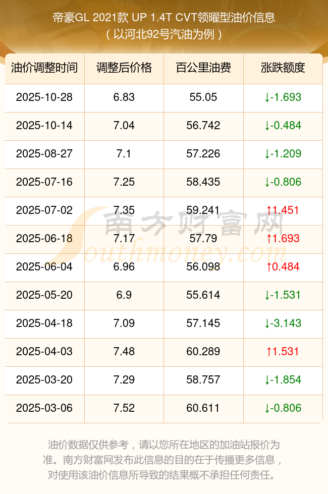 以上油耗數(shù)據(jù)由南方財富網(wǎng)整理提供,僅供參考。