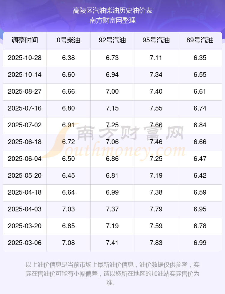 2025年高陵區(qū)汽油價(jià)格一覽表