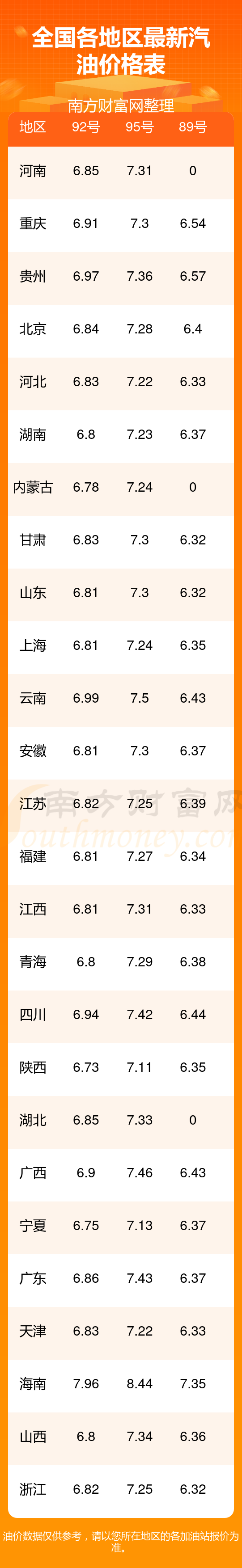 本站提供的油價數(shù)據(jù)僅供參考,具體數(shù)據(jù)以加油站報價為準。