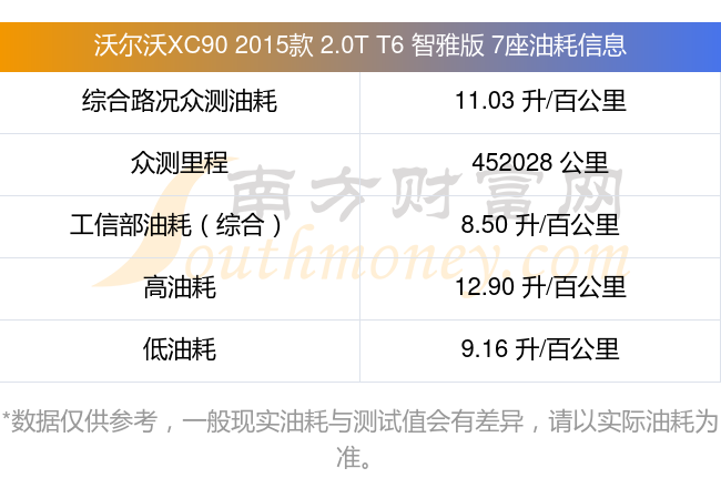 根據(jù)車主實(shí)測(cè)數(shù)據(jù),該車型低油耗為9.16升每百公里,高油耗為12.90升每百公里,綜合路況眾測(cè)油耗為11.03升每百公里,工信部綜合油耗為8.50升每百公里。