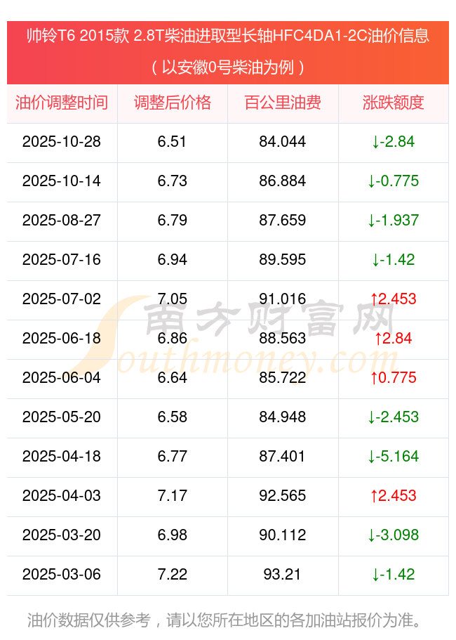 根據(jù)10月28日0號(hào)柴油最新調(diào)整價(jià)格6.51元/升來計(jì)算(以安徽為例),該車型每百公里的平均油費(fèi)是84.044元,上一輪10月14日調(diào)整價(jià)格6.73元每升來計(jì)算,每百公里的平均油費(fèi)是86.884元,對(duì)比上一輪少花2.84元,下一輪的油價(jià)調(diào)整時(shí)間是11月10日24時(shí)。