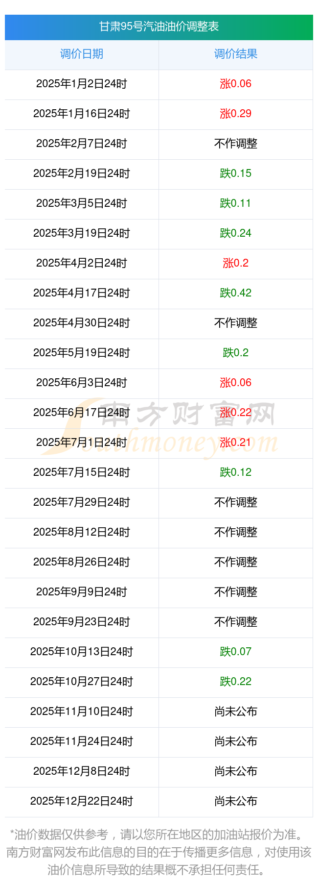 本站提供的油價(jià)數(shù)據(jù)僅供參考,具體數(shù)據(jù)以加油站報(bào)價(jià)為準(zhǔn)。