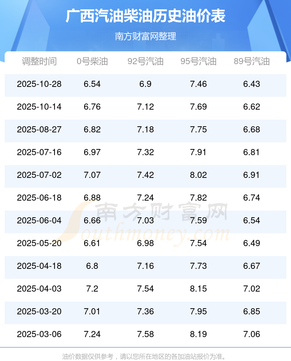 按10月28日92號汽油最新調(diào)整價格6.9元每升來計算(以廣西為例),該車型百公里平均油費為61.617元,按上一輪10月14日調(diào)整價格7.12元每升來計算,百公里平均油費為63.582元,對比上一輪少花1.965元,下一輪油價調(diào)整時間為11月10日24時。