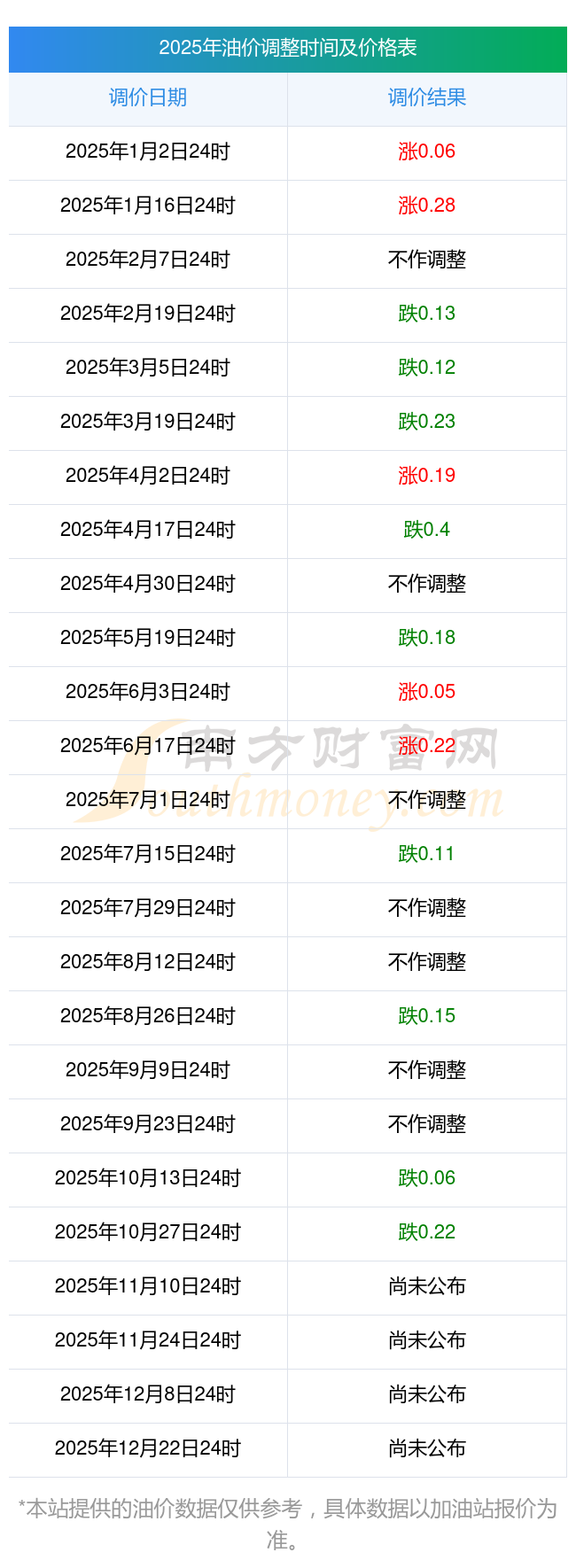 臨平區(qū)11月7日油價(jià)調(diào)整時(shí)間及價(jià)格表