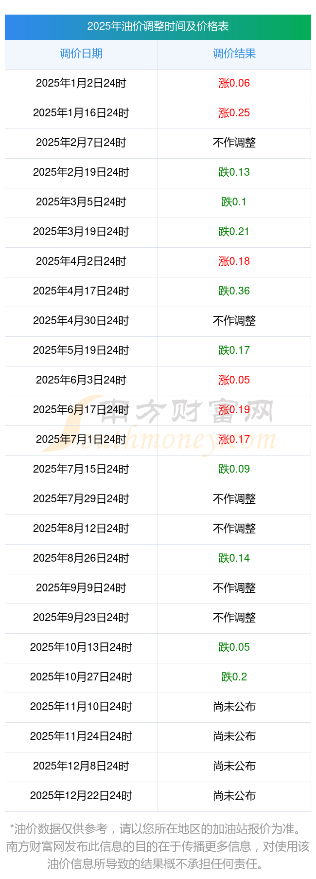 2025年佛山高明區(qū)油價(jià)調(diào)整時(shí)間表