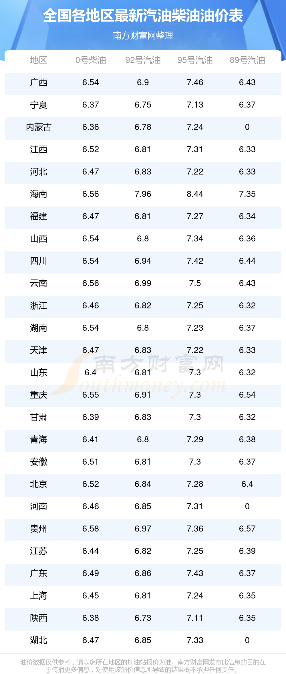 2025年11月7日全國各地油價(jià)調(diào)整及最新汽油價(jià)格表