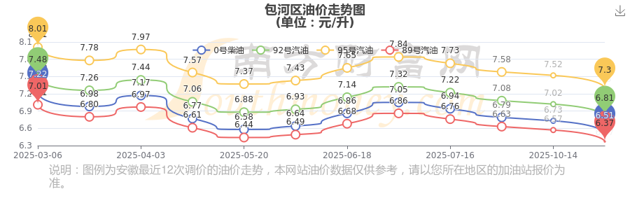 包河區(qū)11月7日0號柴油歷史油價調(diào)整走勢圖