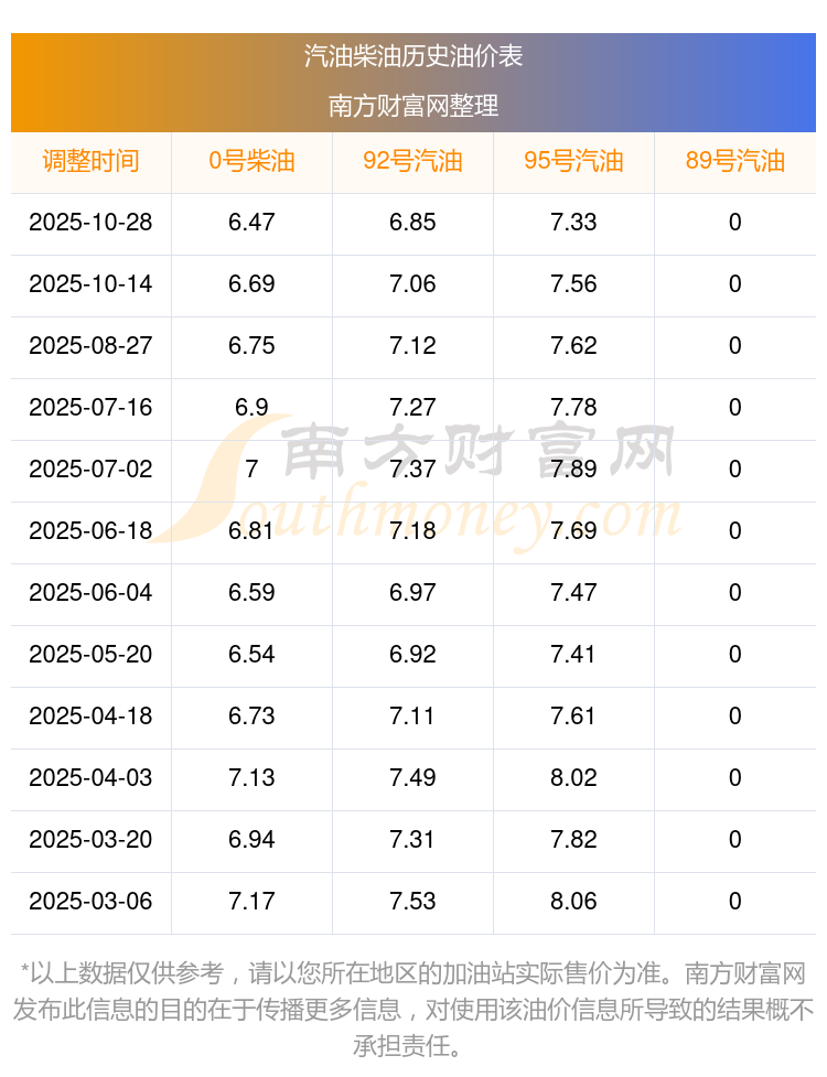 11月7日宜昌95號(hào)汽油的價(jià)格是10月28日調(diào)整后的價(jià)格,具體為7.33元/升,對(duì)比上次調(diào)整時(shí)間10月14日的油價(jià)7.56元每升,下調(diào)了0.23元,下調(diào)幅達(dá)3.042%。下一輪油價(jià)調(diào)整時(shí)間11月10日24時(shí),距離現(xiàn)在還有3.31天。