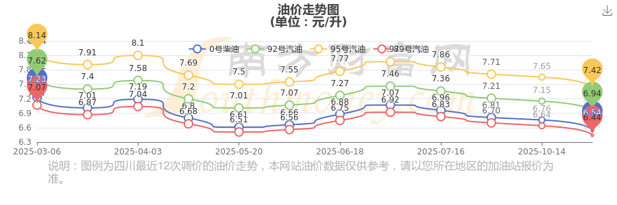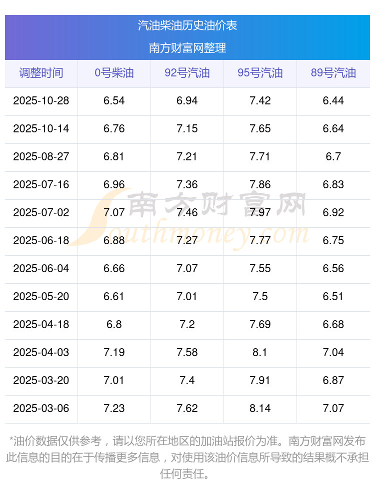 11月7日瀘州92號汽油的價格為6.94元/升,為10月28日油價調(diào)整后的價格,相對上次調(diào)整跌了0.21元,跌2.937%。下一輪油價調(diào)整時間11月10日24時,距離現(xiàn)在還有3.3天。