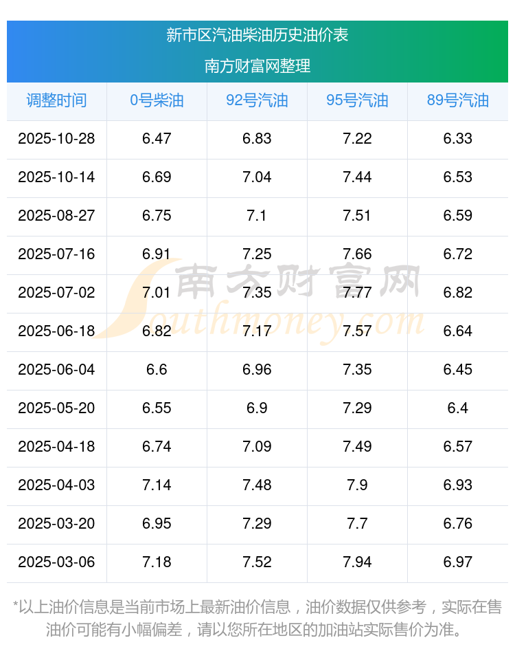 2025年新市區(qū)油價(jià)調(diào)整時(shí)間表