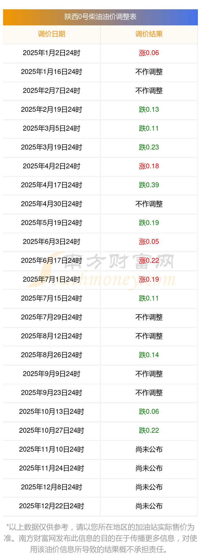 以上數(shù)據(jù)僅供參考,請以您所在地區(qū)的加油站實際售價為準(zhǔn)。南方財富網(wǎng)發(fā)布此信息的目的在于傳播更多信息,對使用該油價信息所導(dǎo)致的結(jié)果概不承擔(dān)責(zé)任。
