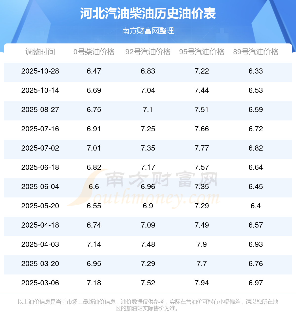 2025年河北汽油價格一覽表