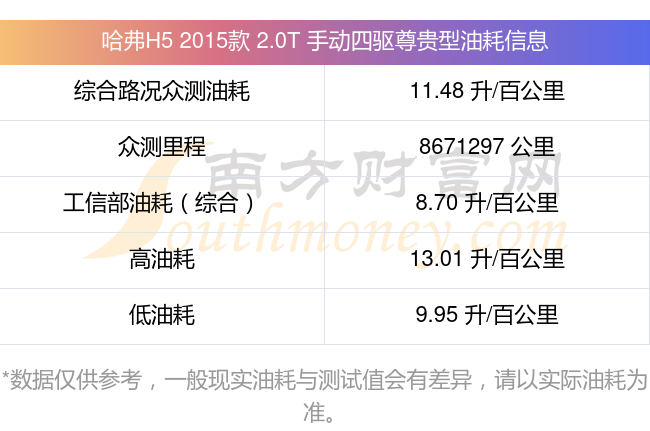 根據車主實測數據,該車型低油耗為9.95L/100km,高油耗為13.01L/100km,綜合路況眾測油耗為11.48L/100km,工信部綜合油耗為8.70L/100km。