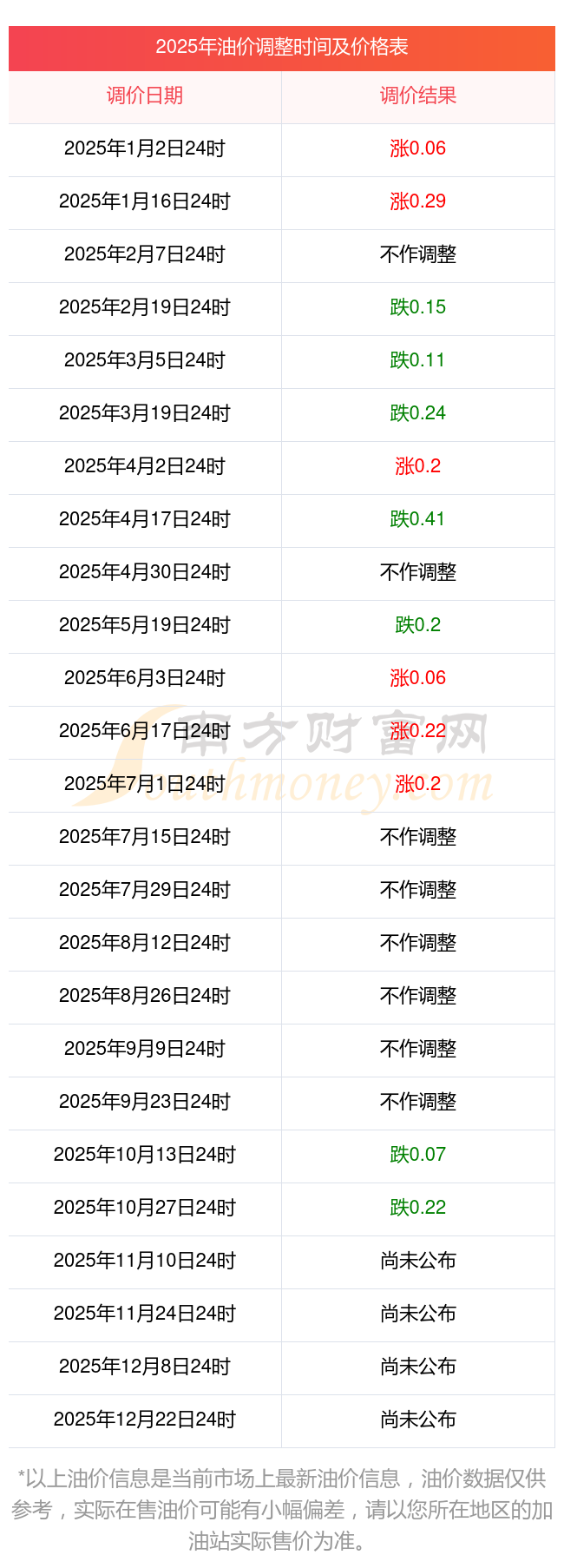 2025年11月8日全國各地汽油價(jià)格調(diào)整時間及價(jià)格一覽表