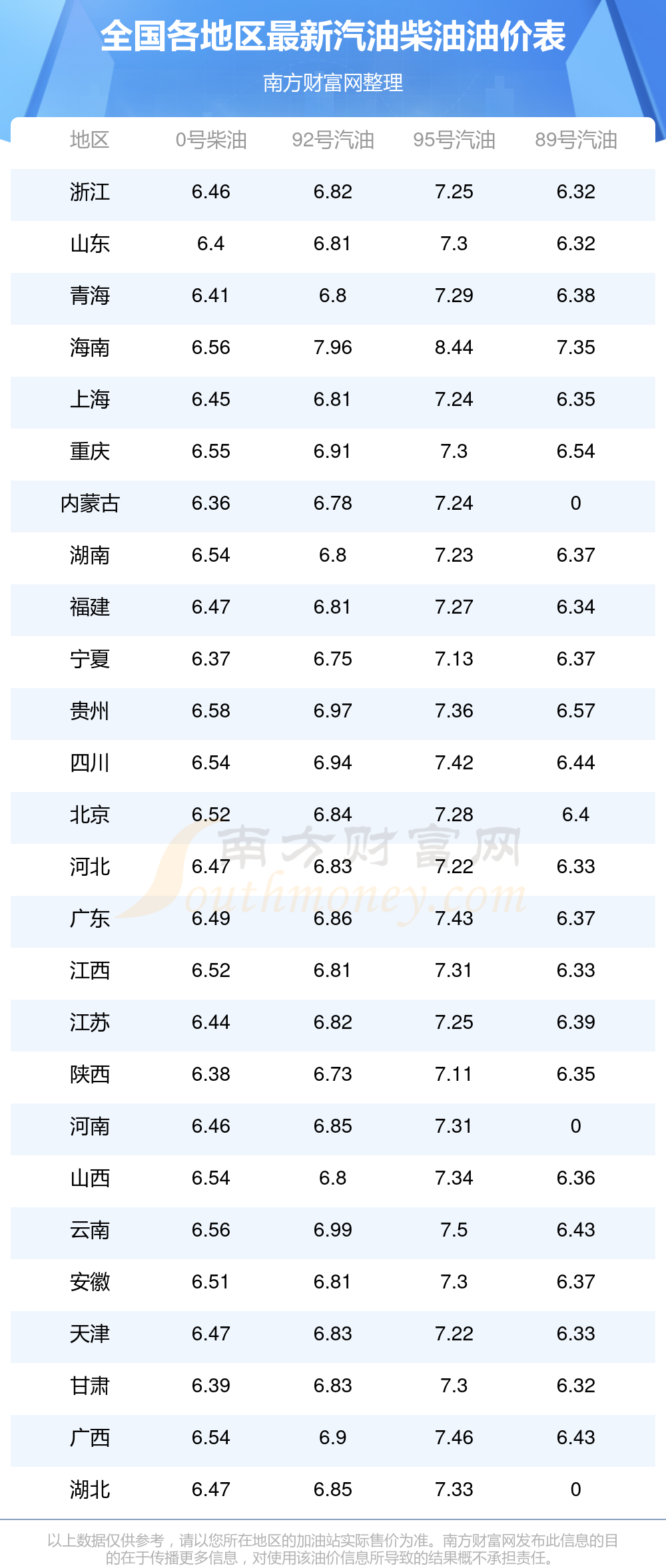 89號(hào)汽油平均價(jià)格:6元每升,其中,最高為海南,價(jià)格為7.35元/升,最低為浙江,價(jià)格為6.32元/升。,下一輪油價(jià)調(diào)整時(shí)間11月10日24時(shí),距離現(xiàn)在還有2.69天。